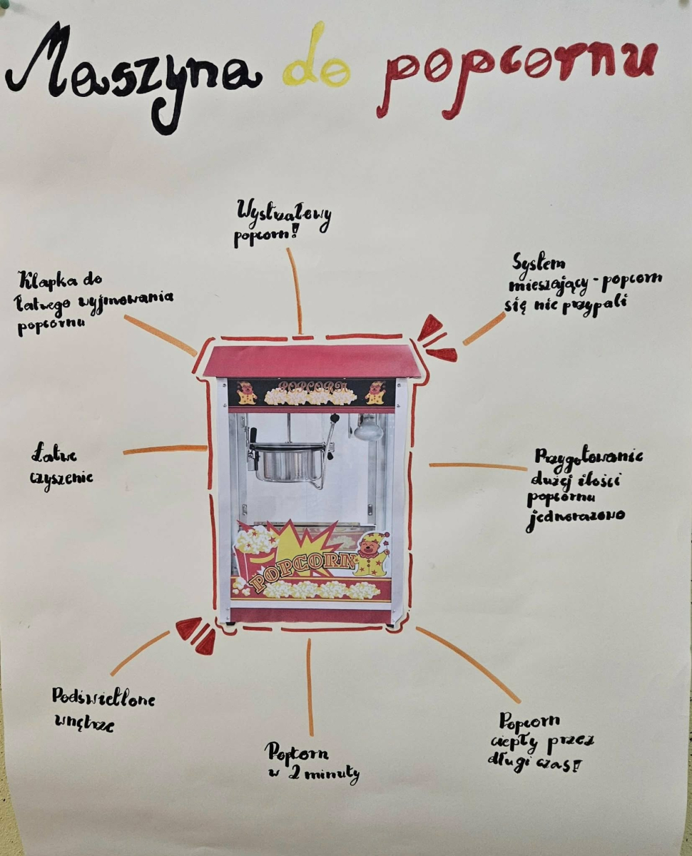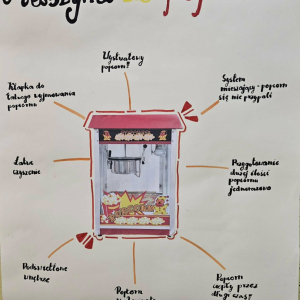 Projekt „Maszyna do Popcornu” został wybrany w demokratycznym głosowaniu uczniów i następnie zrealizowany na terenie szkoły.
